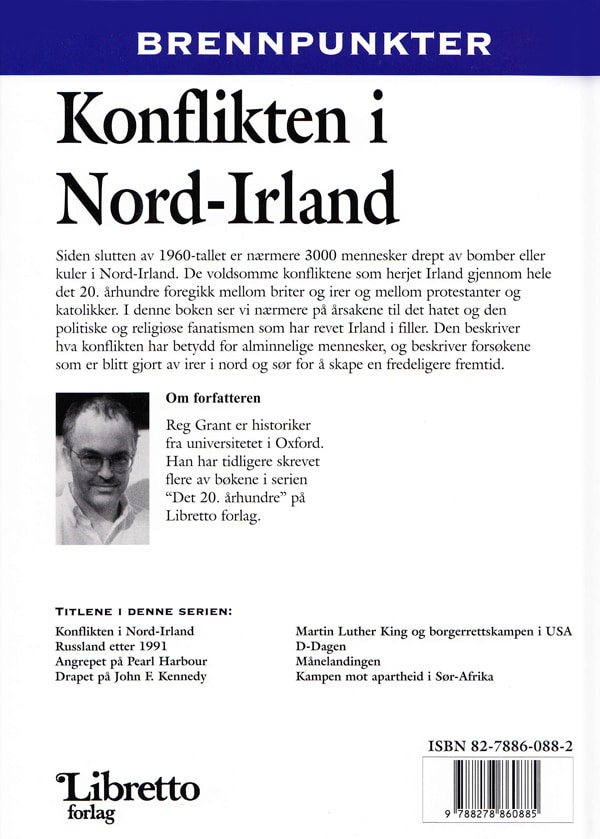 Siden slutten av 1960-tallet er nærmere 3000 mennesker drept av bomber eller kuler i Nord-Irland. De voldsomme konfliktene som herjet Irland gjennom hele det 20. århundre foregikk mellom briter og irer og mellom protestanter og katolikker. I denne boken ser vi nærmere på årsakene til det hatet og den politiske og religiøse fanatismen som har revet Irland i filler. Den beskriver hva konflikten har betydd for alminnelige mennesker, og beskriver forsøkene som er blitt gjort av irer i nord og sør for å skape en fredeligere fremtid.